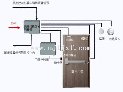2、消防聯動控制:防火門控制器+防火門釋放器+消防聯動信號(接市電AC220V
