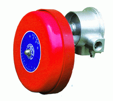 型穿墻水力警鈴是由輪機殼體、葉輪、傳動軸、芯軸、轉臂、鈴錘、警鈴座、支