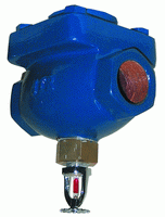 溫感控制閥是自動噴水滅火系統中的控制閥門,是一種定溫動作的控制閥,本閥內部有控制腔和工作腔,當控制腔內有水壓時,因活塞上裝有“O”型密封圈,使水不易泄漏,又因有感溫玻璃球支撐,活塞不能下移。發生火災時,感溫玻璃球噴頭內部液體受熱膨脹,玻璃球 爆破活塞在控制腔水壓推動下移動下死點,水進入工作腔,進入管網系統側,通過水幕噴頭(開式噴頭)噴水降溫,對設施進行保護。